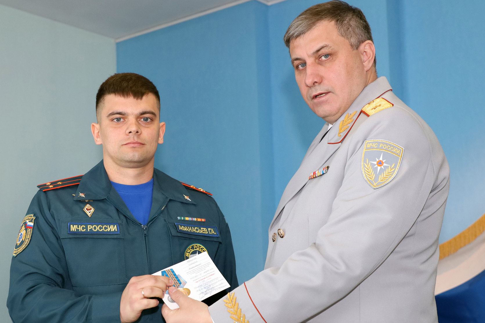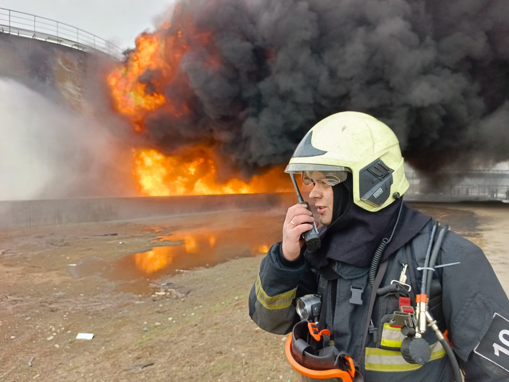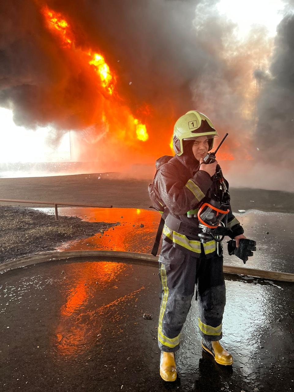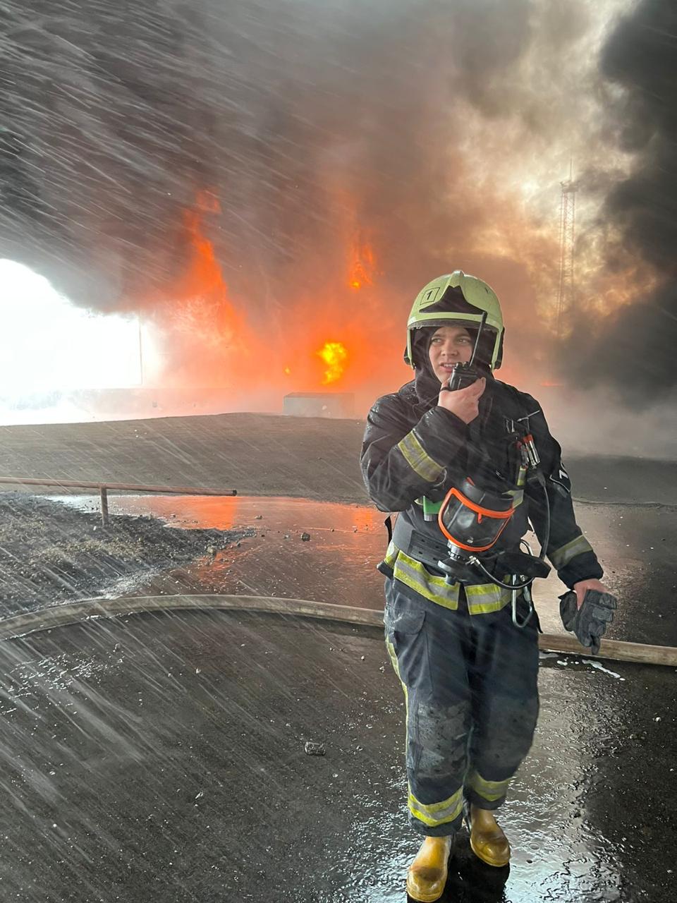 На момент прибытия первых пожарно-спасательных подразделений на место происшествия было установлено, что в результате атаки беспилотного летательного аппарата разгорелось пламя, охватившее два резервуара РВС-5000, заполненных авиационным керосином. Они находились в одном обваловании, среди группы из четырех резервуаров. Площадь охваченной огнем территории составила 500 квадратных метров и в связи с этим был объявлен третий ранг пожара (номер вызова № 3). Капитан внутренней службы Афанасьев Геннадий Анатольевич прибыл на место вызова ровно в 10 часов 00 минут. Приступив к исполнению своих обязанностей вместе с личным составом 1 пожарно -спасательной части, он сосредоточился на полученной задаче от начальника боевого участка: сформировать звено газодымозащитную службу и подать ствол генератор пены средней кратности - 600 для борьбы с огнём, который бесконтрольно вырывался за пределы обвалования, обжигая чернотой ярко-красные потоки легковоспламеняющийся жидкости. Тушение пожара осложнялось невыносимой жарой от горящих резервуаров и порывистым ветром, достигающим более 15 м/с. Проявляя истинное мужество и героизм, в условиях, сопряжённых с риском для жизни, Афанасьев Геннадий Анатольевич не допустил распространения огня на соседнюю группу резервуаров, продолжая выполнять боевую задачу. В процессе охлаждения цистерны произошла разгерметизация и взрыв резервуара. Капитан внутренней службы Афанасьев Г.А. не смог выбраться из огненного плена и получил травмы, несовместимые с жизнью.